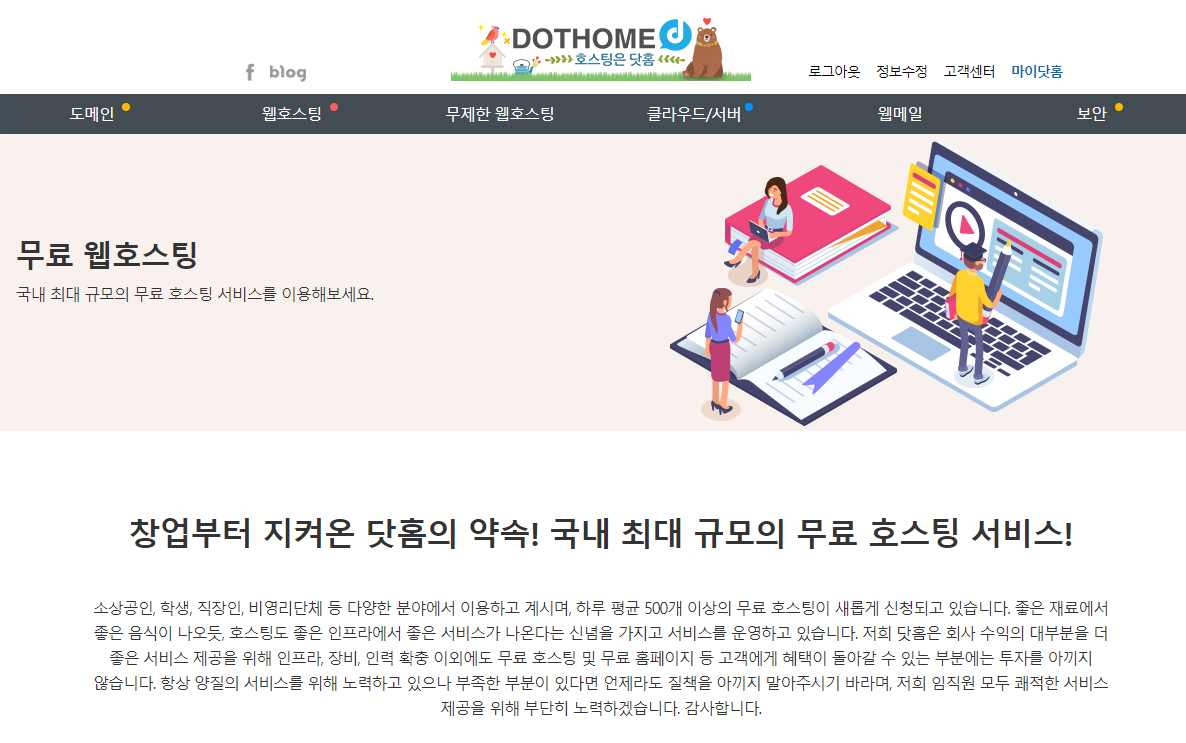 닷홈은 무제한 웹호스팅, 무료호스팅, 도메인, 홈페이지빌더, 무제한메일, SSL보안인증서, 서버호스팅, 코로케이션 서비스를 제공하고 있습니다.