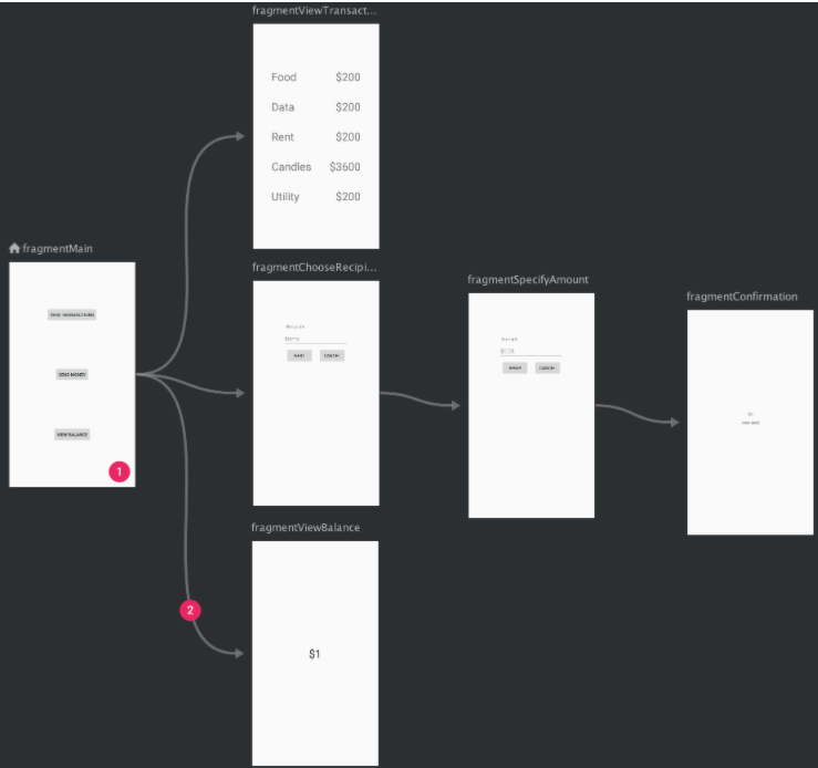 - 그리고 원하는 Fragment1과 Fragment2를 만들어서 각각 생성한뒤 navigation에서 배치해주기(이때 Fragment는 마우스 오른쪽 클릭을 해서 Blank Fragment 생성 뒤 만들어준다)