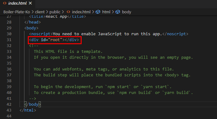 - 'root'를 쓸 수 있는 이유? index.html에서 명시