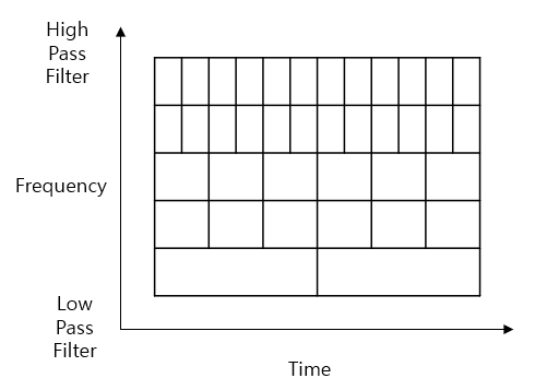 - 고주파수 영역에서는 시간축의 창폭을 조밀하게 하여 시간 영역의 분해능 증가