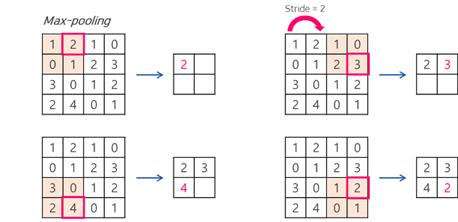 - 스트라이드(Stride)는 입력데이터에 필터를 적용할 때 이동할 간격을 조절하는 것, 즉 필터가 이동할 간격을 말한다