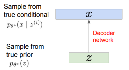 - VAE의 decoder은 z로부터 x를 얻을 확률 p(x|z)