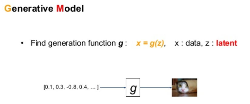 - 입력변수(latent variable) z로부터 결과물(image)를 만들어내는 모델