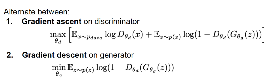 구분자의 파라미터를 업데이트할 때에는 생성자의 파라미터를 고정시키고, 생성자의 파라미터를 업데이트할 때는 구분자의 파라미터를 고정해주어야 한다.