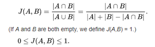 - 유사도를 측정하는 방법은 두 집합의 교집합인 공통된 단어의 개수를 두집합의 합집합