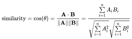 - 두개의 벡터 값에서 코사인 각도를 구하는 방법